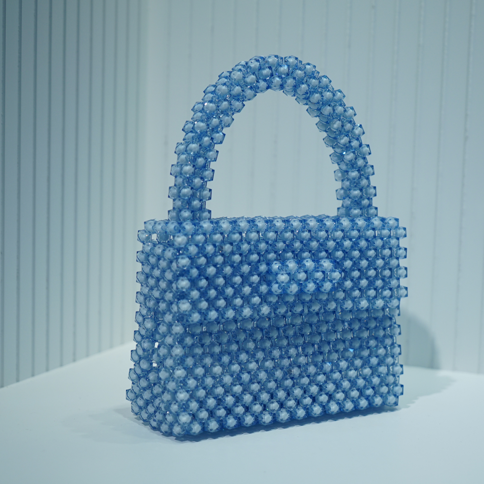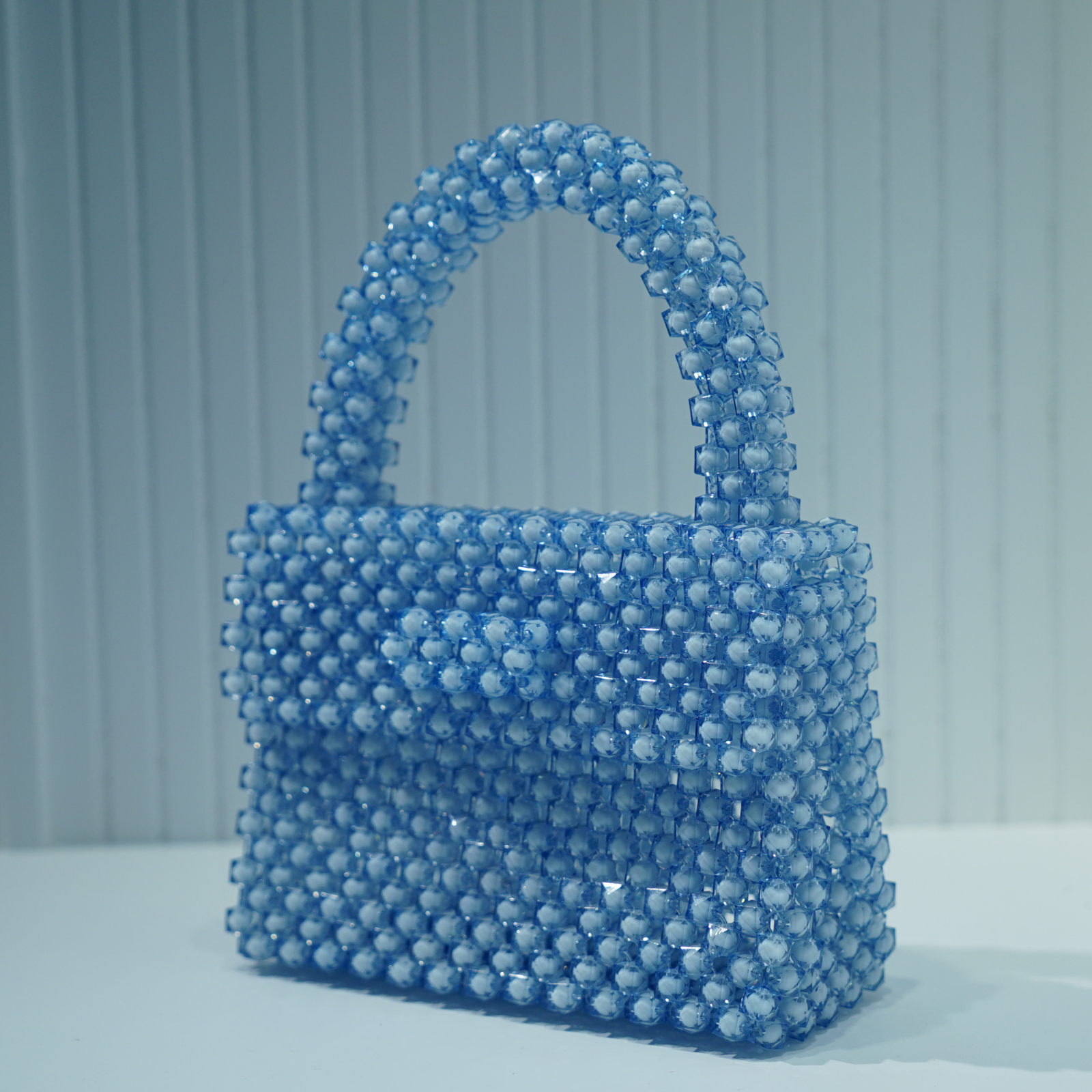 Özel Tasarım El Yapımı Bebek Mavisi Boncuk Çanta