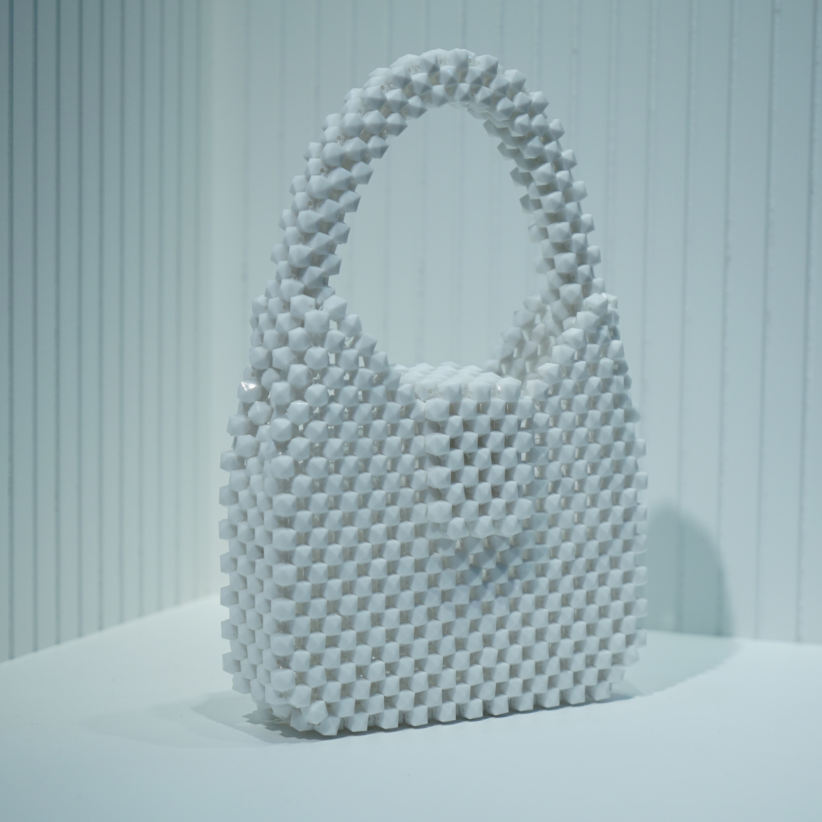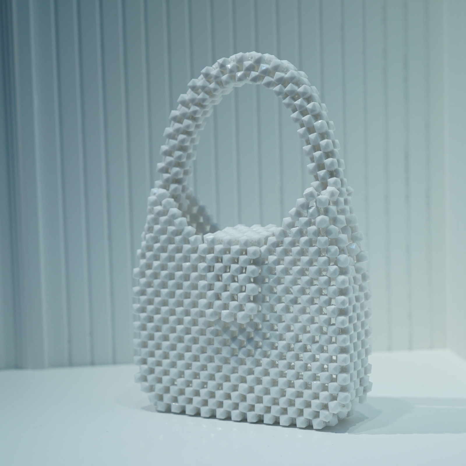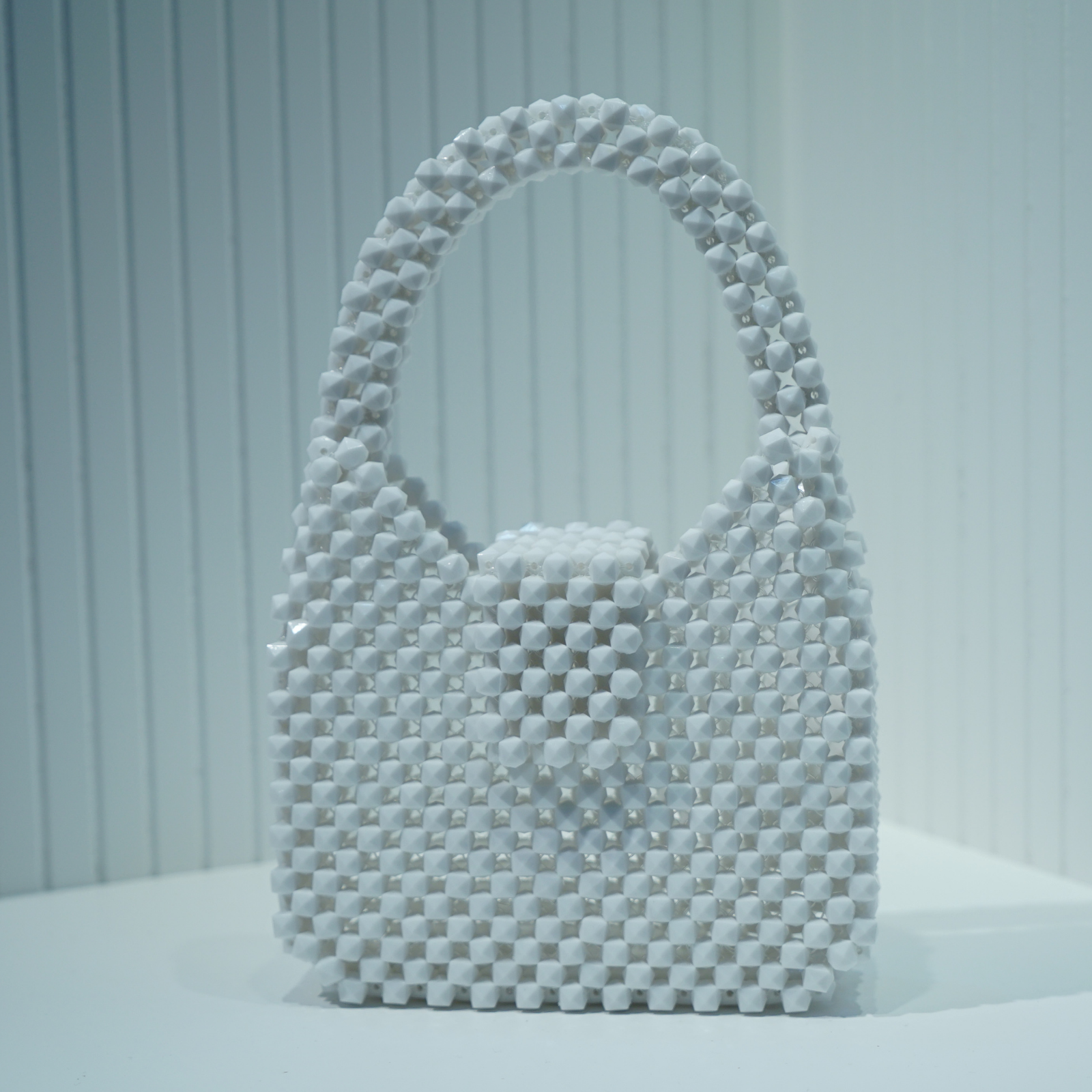 Özel Tasarım El Yapımı Beyaz Küp Kare Boncuk Çanta